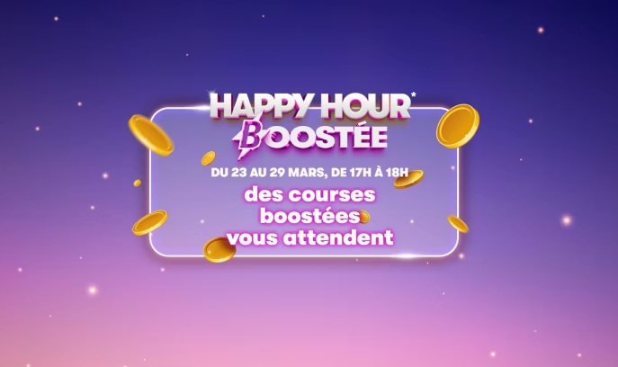27 mars 2026 — Les membres de PMU.fr peuvent terminer la semaine en beauté grâce à une nouvelle "Happy Hour boostée". Zoom sur cette opération qui permet de bénéficier de gains augmentés sur une sélection d'épreuv...